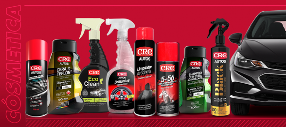 CRC ofrece lubricantes como el Lubricante Penetrante 5-56® - líder en el territorio nacional y único al tener 5 beneficios y 56 usos- que permite lubricar partes metálicas reduciendo la fricción entre superficies como bisagras, chapas y herramientas; penetra aflojando piezas metálicas; desplaza la humedad en componentes electrónicos; protege los metales evitando la oxidación; limpia el polvo y óxido leve; y remueve adhesivos. Por otro lado, y no menos importantes, están el aceite lubricante; protector y acondicionador para correas; siliconas con filtro UV que brillan y protegen superficies de caucho, plástico, cuero, vinilo y madera como el tablero y todas las partes externas del auto; y restauradores de partes negras para renovar el color y brillo de las superficies deterioradas por el sol. Estos productos son protagonistas por sus exclusivos y agradables aromas que se basan en perfumes, trabajados en conjunto con casas de fragancias a nivel mundial.