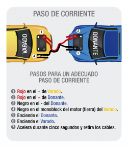 Otra opción es pasar corriente de un carro que tenga su batería en buen estado. Al igual que el anterior, es indispensable tener clara la conexión de los cables que pasarán corriente así: