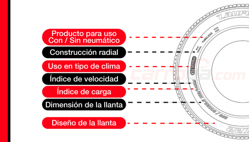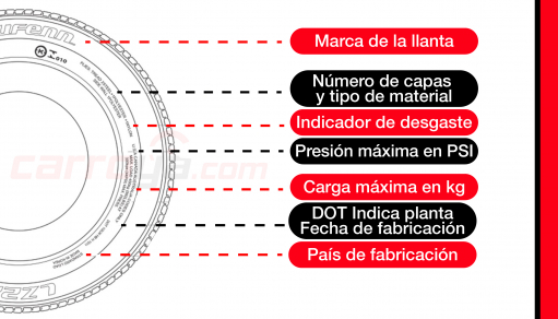 Todas las llantas poseen información que está inscrita en varias partes de su estructura. Estas letras, símbolos, números e incluso labrado brindan indicaciones claves para elegir las llantas correctas, evitando problemas futuros, tanto de operación como de seguridad y financieros, puesto que al seleccionar la equivocada se pueden generar averías, accidentes y gastos infructuosos.