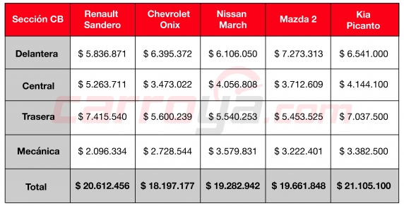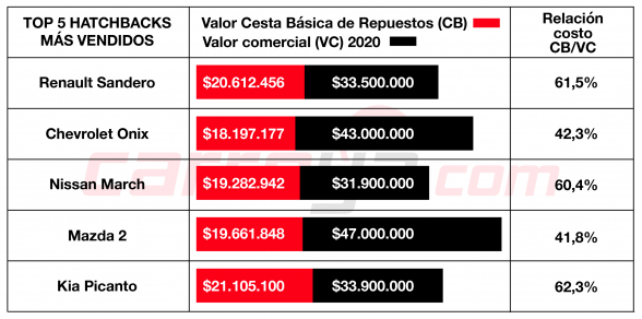 ¿Qué tan costosos son los repuestos de los hatchbacks más vendidos en Colombia?