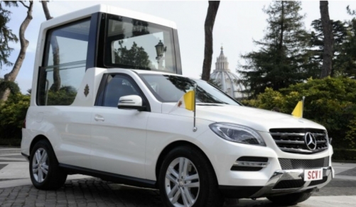 El popular papamovil actualmente es un Mercedes Benz Clase G que fue modificado con un espacio en la parte posterior donde se sienta el Papa. Los cristales que lo rodean tienen un fuerte blindaje y este fue impuesto después del atentado contra el Papa Juan Pablo II, el 13 de mayo de 1981.