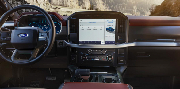 Por su parte, la Ford F-150 incorpora una pantalla LCD de productividad de 12 pulgadas totalmente digital con gráficos y animaciones a color que responden a los modos de conducción seleccionables del vehículo (Normal, ECO, Sport, Tow/Haul, Slippery, Deep Snow/Sand, Mud/Rut). Adicionalmente, muestra datos e información para el manejo Off Road, todo esto para mantener informado al conductor sobre las incidencias de la carretera. También, equipa otra pantalla de igual tamaño (12”) para el info entretenimiento en posición horizontal completamente táctil, la cual es compatible con Apple Car Play y Android Auto.