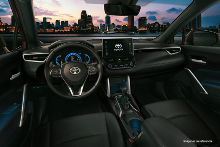 • Toyota Corolla Cross SEG Híbrida desde 109.3 millones de pesos: entrega luces led con sensor de circulación diurna, detalles en color azul distintivos del motor híbrido, encendido por botón, tapizado en cuero, espejos adaptativos para la reversa e indicador de punto ciego y sunroof.