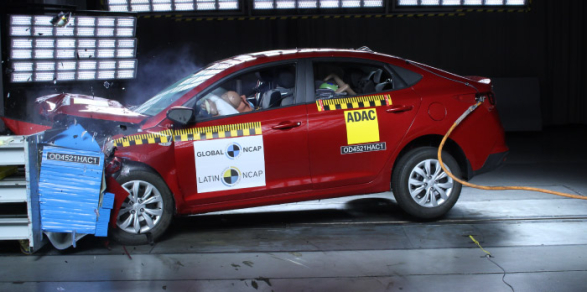 El Nuevo Hyundai Accent, fabricado en India y México, con una bolsa de aire frontal como equipamiento estándar y sin control electrónico de estabilidad de serie, obtuvo cero estrellas por parte de Latin NCAP. Lo anterior, debido a que este modelo mostró un bajo desempeño en el impacto frontal y lateral por la ausencia de airbags para el copiloto y por los costados para la cabeza como equipamiento estándar. También la ausencia de sistemas para la retención infantil y el frenado autónomo de emergencia para mitigar el contacto con peatones, castigaron drásticamente a este modelo.