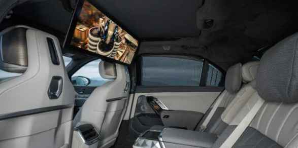 Adicionalmente, los pasajeros de la parte trasera podrán acceder a una nueva pantalla panorámica tipo cine de 31,3 pulgadas en formato 32:9 con resolución 8K que se despliega desde el techo para garantizar el entretenimiento de todos los ocupantes. Lo anterior acompañado del sistema de sonido 4D Bowers & Wilkins Surround Sound con subwoofers en los asientos y 36 bocinas, controles remotos de pantalla táctil integrados en las puertas (BMW Touch Command) y un sistema automático de persiana trasera que se cierra cuando se enciende la pantalla de cine.