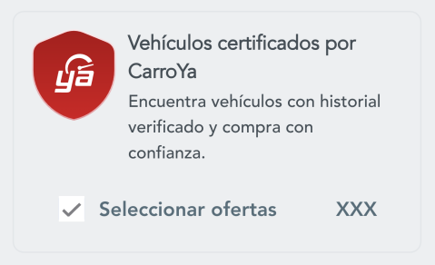 Cuando entres a nuestra grilla de resultados, verás cientos de carros usados disponibles. Para ir directamente a los que te interesan y tienen la máxima garantía de seguridad, simplemente busca y haz clic en la opción “vehículos certificados por CarroYa” https://www.carroya.com/automoviles-y-camionetas?page=1&plan=507 Al instante, solo verás la selección Premium que ha pasado por nuestro estricto proceso de verificación. Esta es la forma más rápida y segura de empezar tu búsqueda.