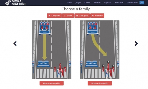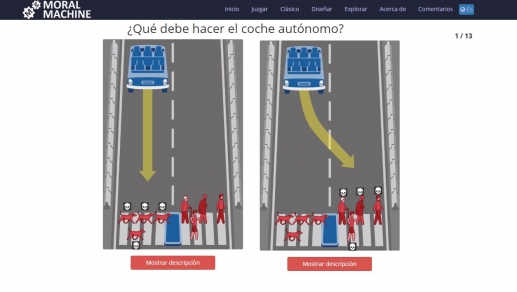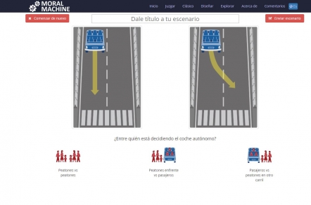 Si accedes a moralmachine.mit.edu, podras participar en un juego en el que te enfrentas a dilemas éticos y tendrás que decidir qué harías en cada situación. Además de contestar a esas preguntas, es posible crear escenarios donde aparezcan otras situaciones concretas, y estos escenarios serán presentados a otros jugadores para conocer su respuesta ante los mismos.