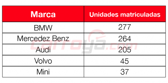 Asimismo, las marcas premium cerraron el mes con 870 unidades registradas, entre las marcas que destacan están: