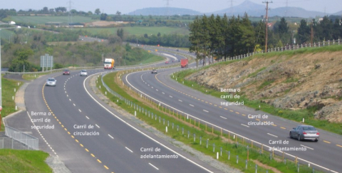 • De 3 carriles: los vehículos deberán transitar por los carriles extremos que queden a su derecha; el carril central sólo se utilizará en el sentido que señale la autoridad competente